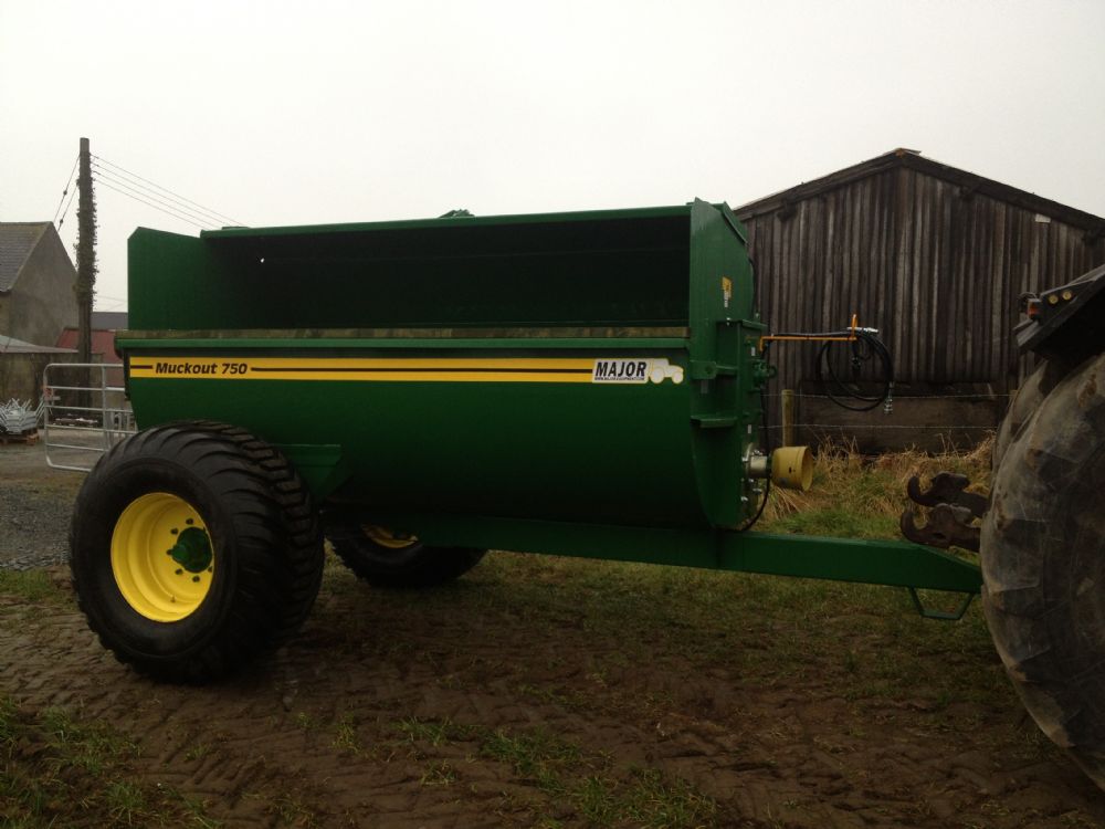 major side spreader The MAJOR 7.5 cubic yard capacity Muck-Out will handle both slurry and solid manure with a The main rotor runs on 2” bearings and is powered through a robust chain and sprocket drives set. All models are equipped with heat treated and case hardened flail chains which are anchored to the rotor. As standard a solid timber rail Depth Spreader chains provides protection from front end loading damage. The minimim HP requirement for the MAJOR Side Spreader is 50Hp.