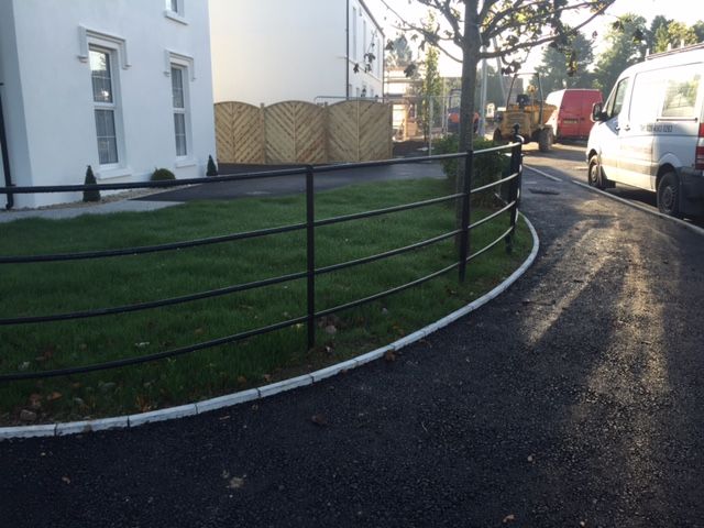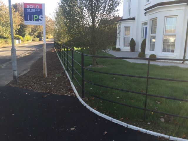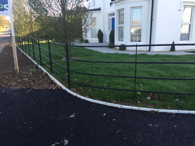 Picture showing park ranch style railing; Spec 1mtr high 4 bar rail 27mm OD tubing 1.6 mtr approx between legs .Sections approx 3.2 mtr bolted together.